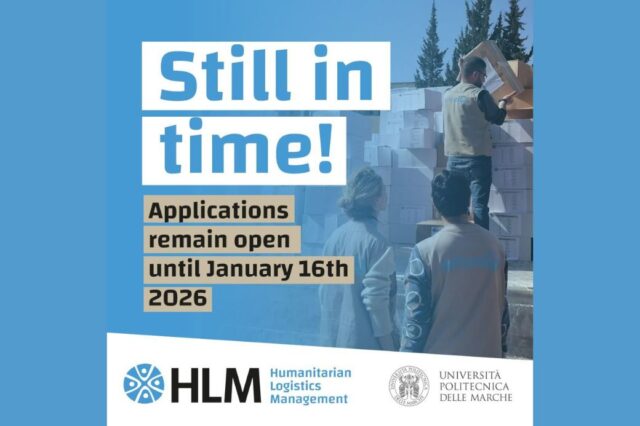 The application deadline for the next edition of the Master in Humanitarian Logistics Management (HLM), promoted by the Università Politecnica delle Marche (UNIVPM), has been extended to 16 January 2026. The extension has been introduced to allow interested candidates additional time to complete the application process. The Master is part-time, taught in English, and designed […]