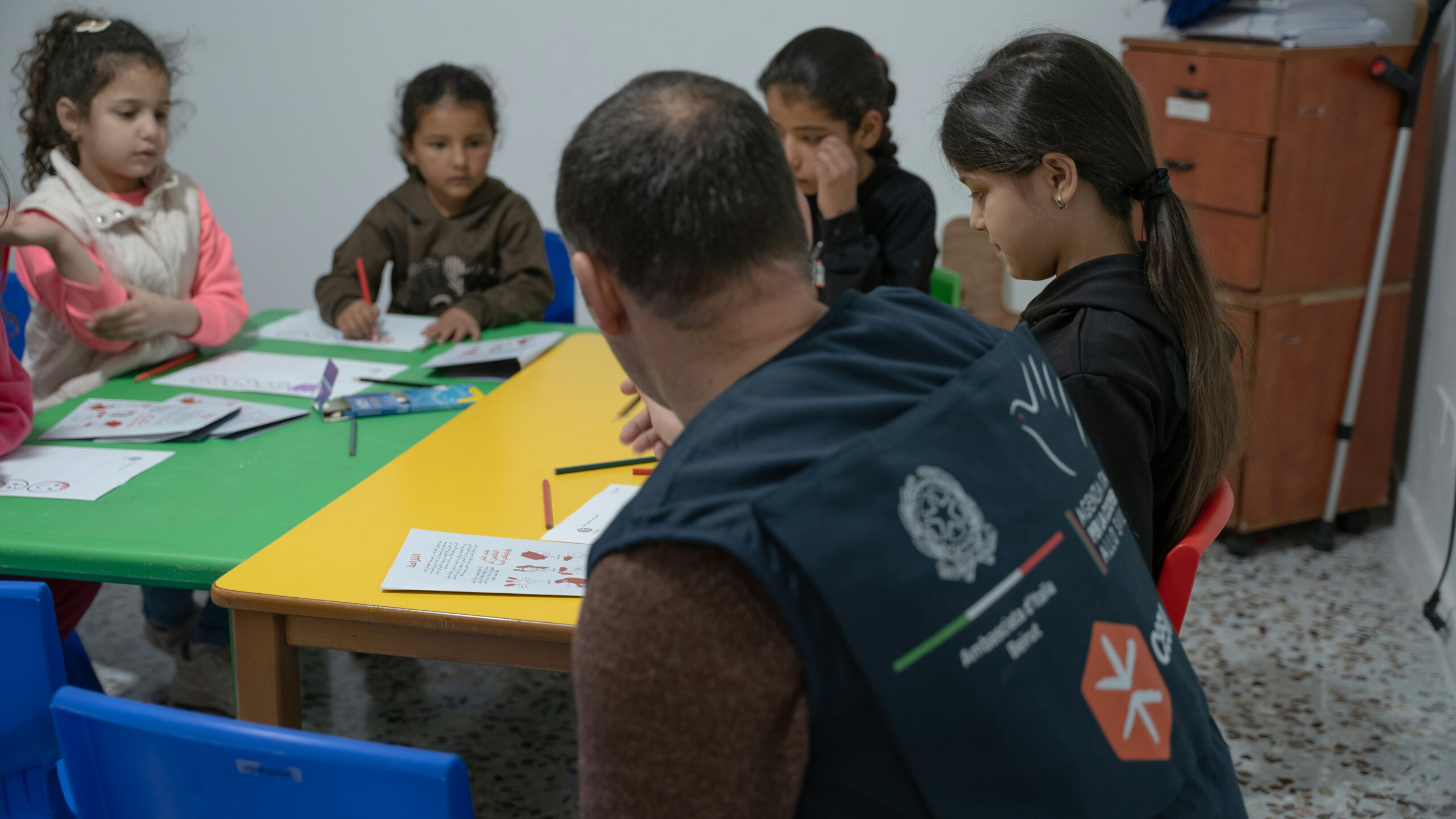 “We lived through two very difficult months. The bombings continued day and night; we didn’t know where to hide. My children were terrified, they couldn’t sleep, they cried all the time. In that chaos, we met the CESVI workers, who helped us a lot. Now my children are colouring, drawing, and smiling again. It’s as if they are finally coming out of that darkness,” recounts Hossam, a father of five and displaced in Baalbek during the early months of the conflict escalation.